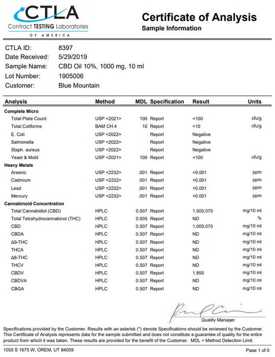 Ingredients: Organic MCT Oil, Broad Spectrum Terpenes, cannabidiol (CBD)