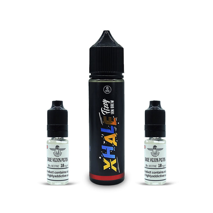 XHALE FIZZY vape juice line is assuredly a premium product that is available in the UK. The refreshing and tantalizing flavours offered in the FIZZY mix is well balanced and attractive. The selection of flavours includes Mix Berries, Red Bull, Vimto, Passionfruit, Lemon And lime, Cola, Orange, Guava and Irn brew.