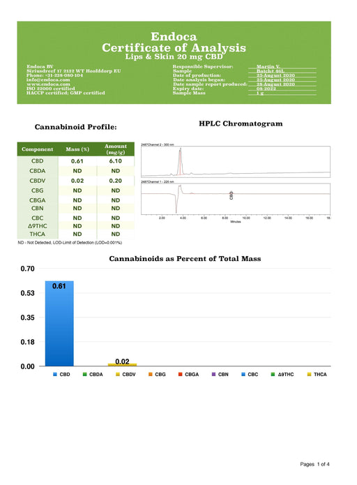 Endoca 20mg CBD Lips + Skin Moisturiser - 4.25g