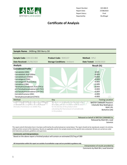Hempura 2400mg CBD Broad Spectrum Oil Pure Wild Berries Flavour With terpenes - 30ml