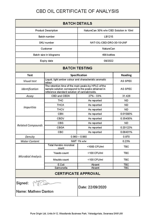 NaturecanIn stockNovel Food application number: RP105 Naturecan's 30% CBD Oil is broad-spectrum cannabidiol (CBD) combined with pure organic MCT carrier oil – and a...